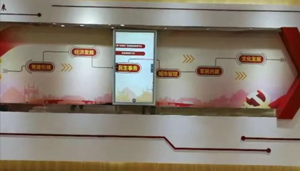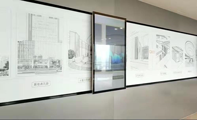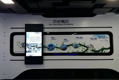 滑軌屏顧名思義就是可以在軌道上滑行的顯示屏幕,是一種新型的多媒體展示方法,在類似坐標軸的展墻上布置展板或液晶拼接屏作為背景墻,同時在前面安置一組可滑動的機械結構以懸掛觸摸一體機或者液晶廣告機。預先在背景墻上不同的位置布置了感應觸點,當觀眾在顯示屏面前經過時,顯示屏每感應到一個觸點便會自動播放相應的內容,內容可以是圖片、文字或者視頻。