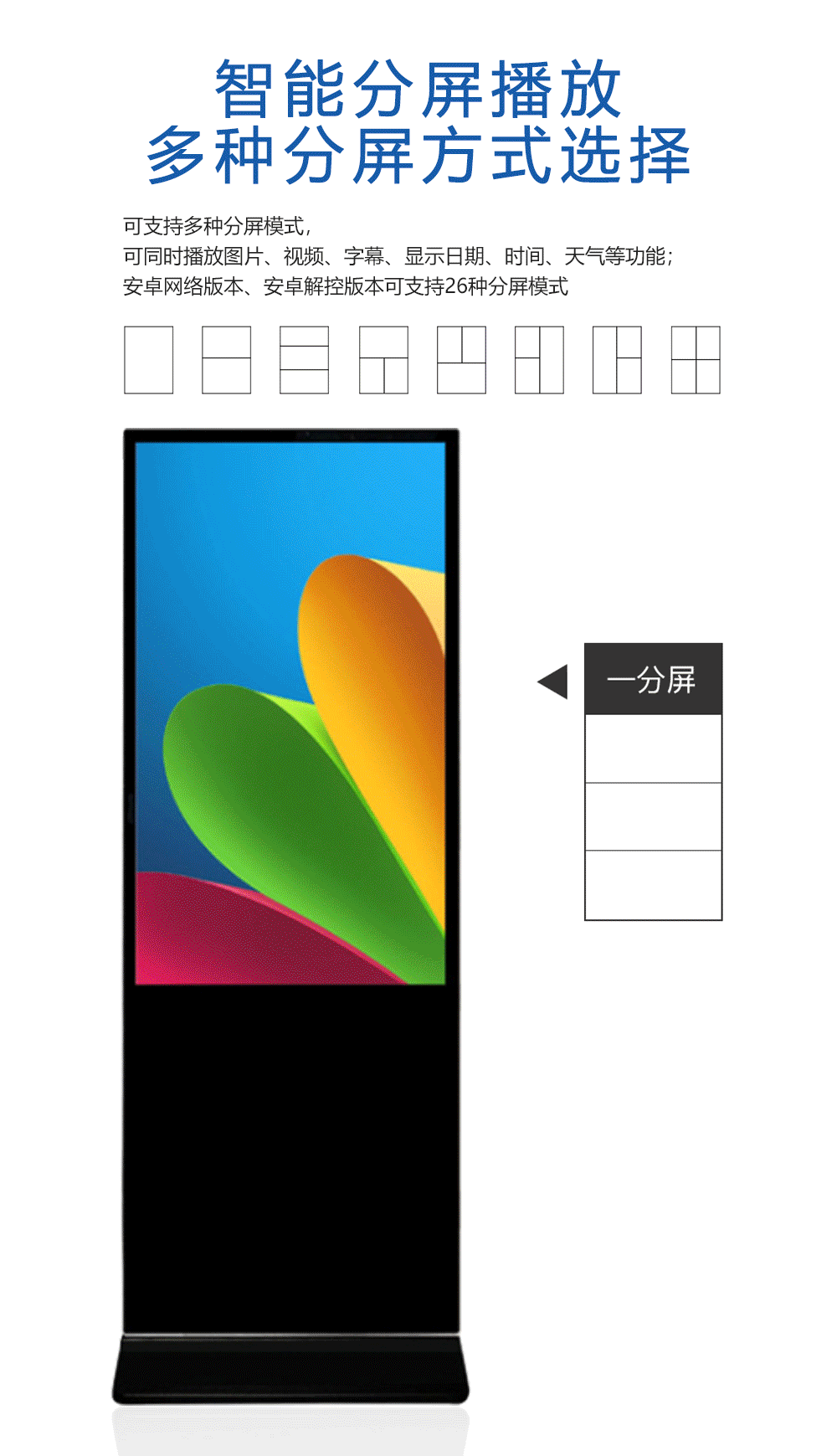 我們常見的廣告機有立式廣告機和壁掛式廣告機,以及臥式廣告機。在這幾種廣告機中,我們在很多地方都能看到的是立式廣告機。不管是在大商場,還是在活動現場,機場等地方。立式廣告機具有網絡化、實時性和多樣化的特點,無疑是時代的杰出代表。